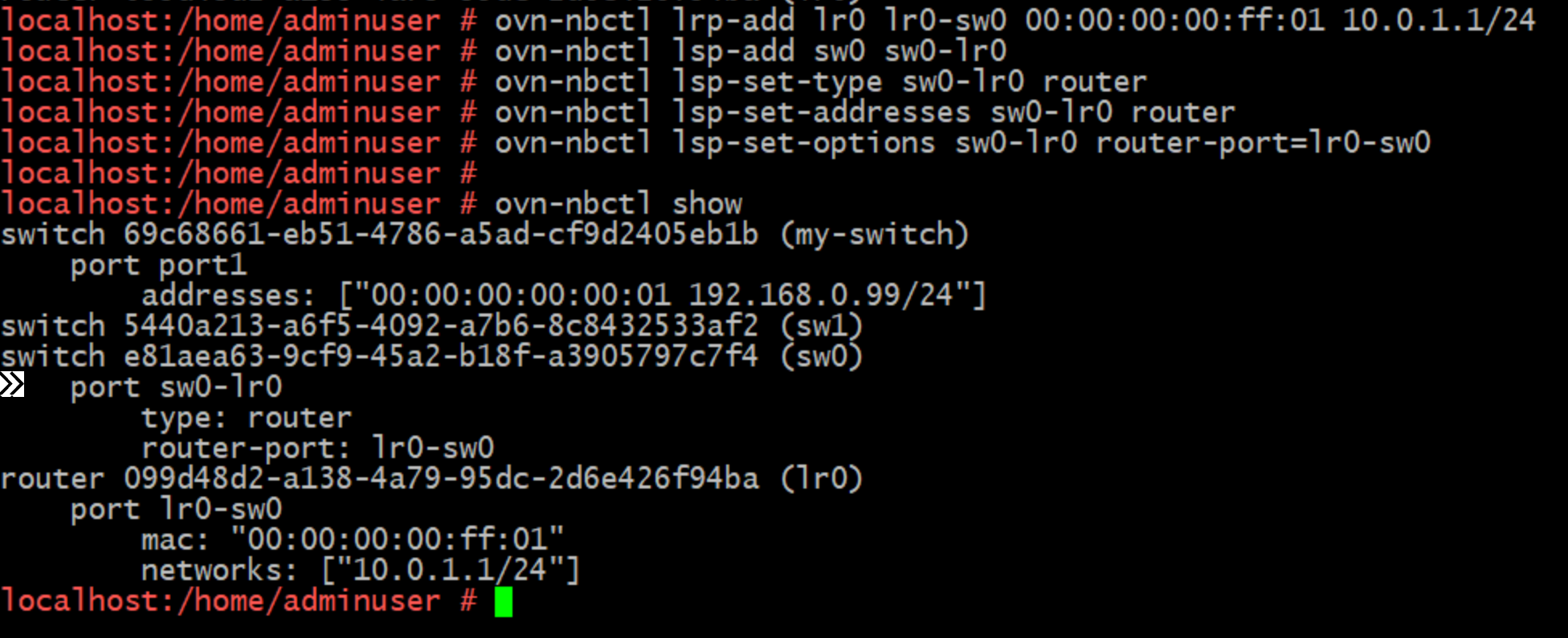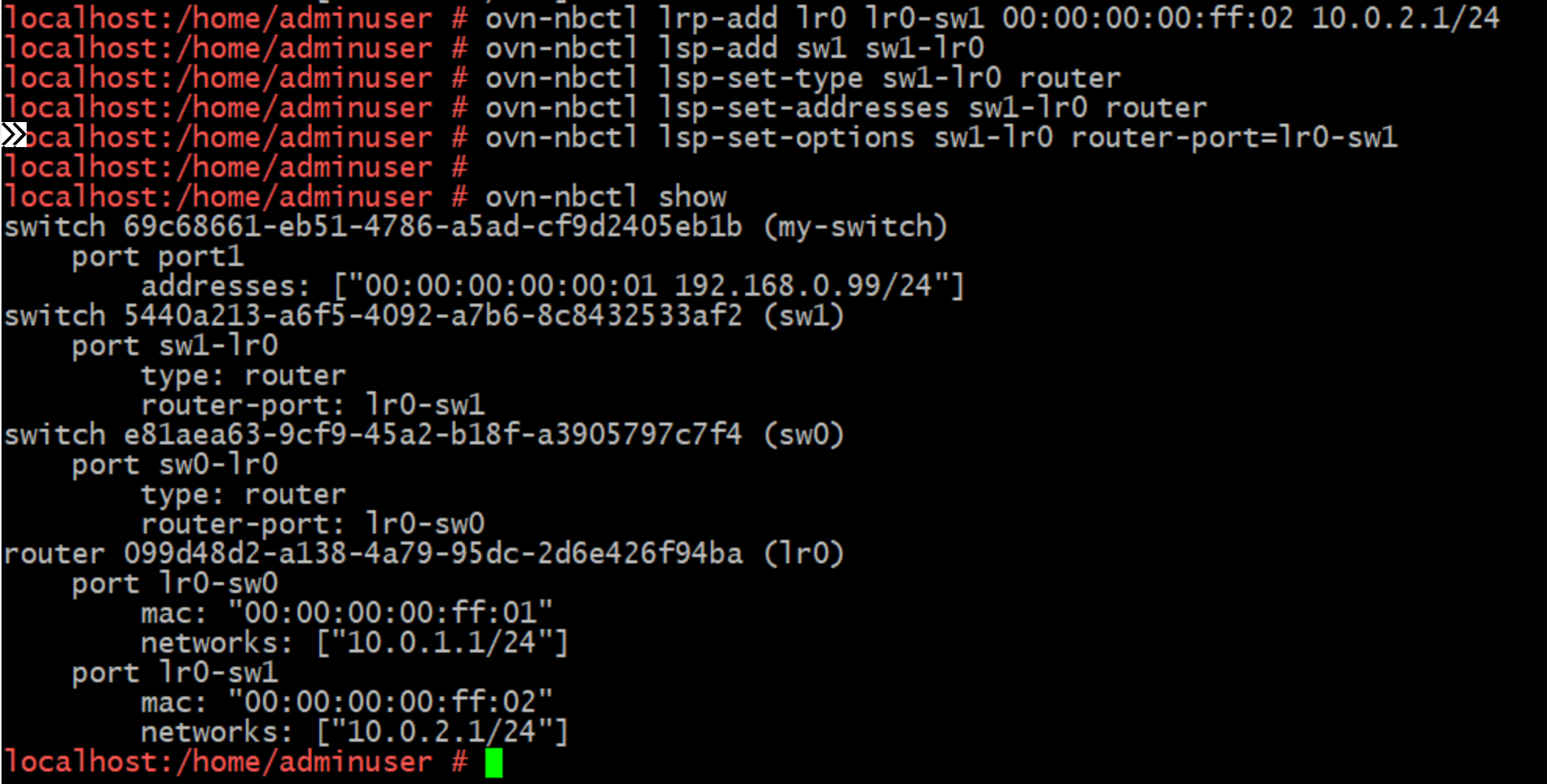 We can configure additional options on our switch and ports based on our needs. Some of these commands are directly available as methods in ovn-nbctl, while others involve executing database queries (still using ovn-nbctl). The examples below will illustrate the differences.