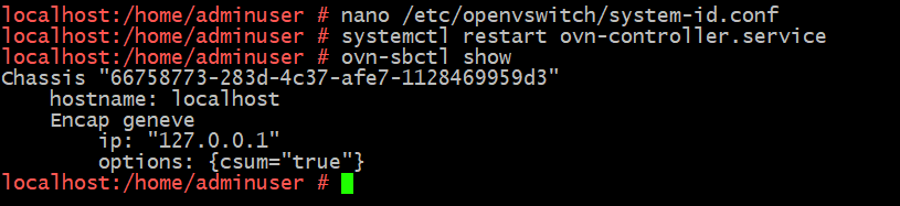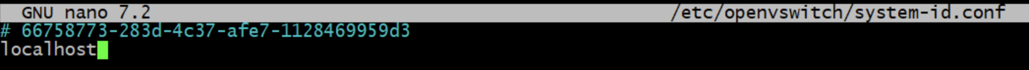 All you need to do is edit /etc/openvswitch/system-id.conf (on SUSE that’s the right location but it could be different on Ubuntu/others), comment out the generated UUID and replace it with whatever helpful ID you want.