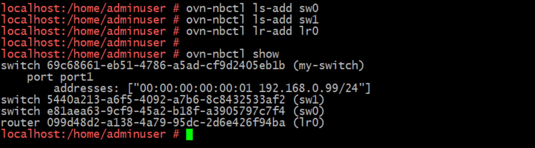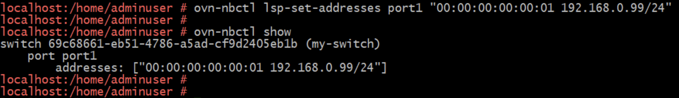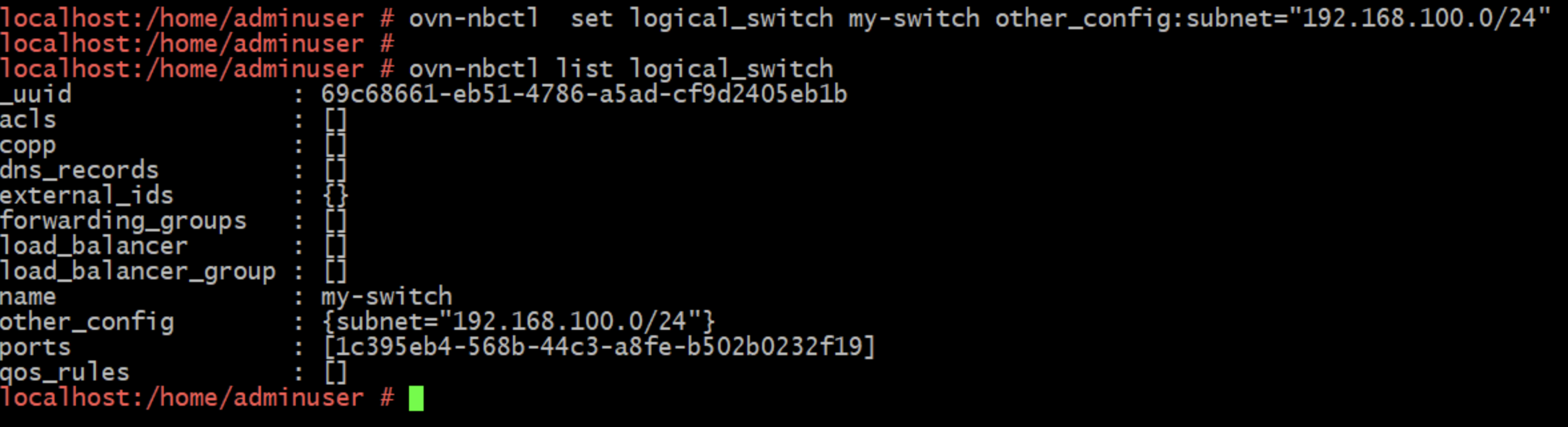 Note the ‘set’ / ’list’ elements in the commands above. These are database queries, against the logical_switch table as opposed to running something like ovn-nbctl lsp-set-addresses method below.
